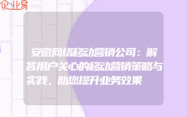 - 安徽网络移动营销公司:解答用户关心的移动营销策略与实践,助您提升业务效果