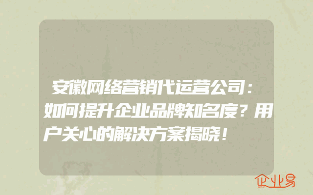 - 安徽网络营销代运营公司:如何提升企业品牌知名度?用户关心的解决方案揭晓!