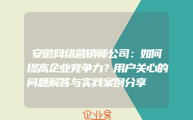 - 安徽网络营销师公司:如何提高企业竞争力?用户关心的问题解答与实践案例分享