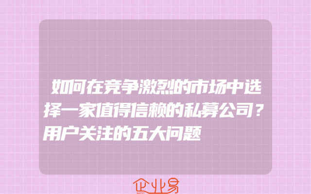 - 如何在竞争激烈的市场中选择一家值得信赖的私募公司?用户关注的五大问题
