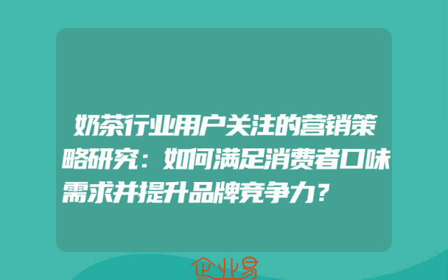- 奶茶行业用户关注的营销策略研究:如何满足消费者口味需求并提升品牌竞争力?