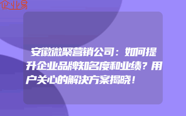 - 安徽微聚营销公司:如何提升企业品牌知名度和业绩?用户关心的解决方案揭晓!