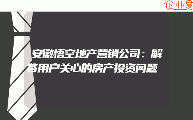 - 安徽悟空地产营销公司:解答用户关心的房产投资问题