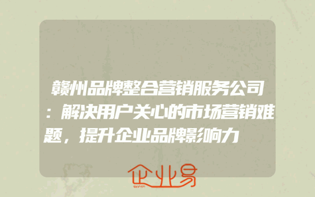 - 赣州品牌整合营销服务公司:解决用户关心的市场营销难题,提升企业品牌影响力