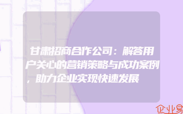 - 甘肃招商合作公司:解答用户关心的营销策略与成功案例,助力企业实现快速发展