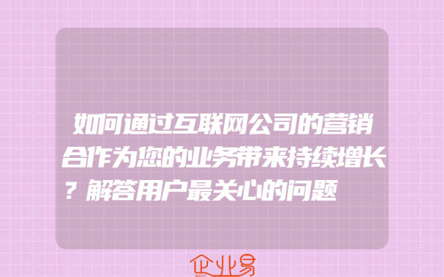- 如何通过互联网公司的营销合作为您的业务带来持续增长?解答用户最关心的问题