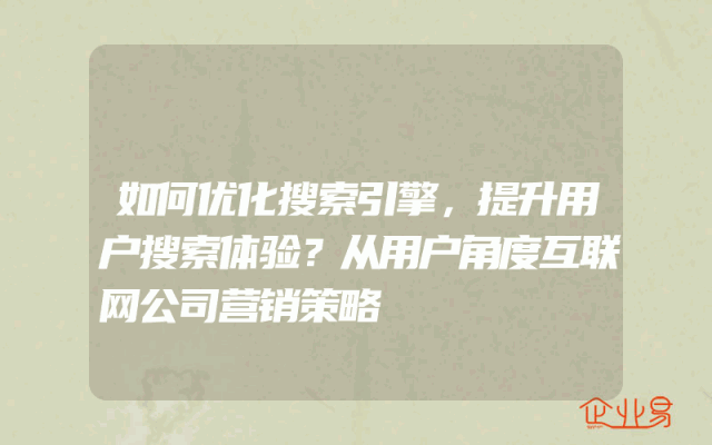 - 如何优化搜索引擎,提升用户搜索体验?从用户角度互联网公司营销策略