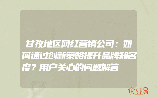 - 甘孜地区网红营销公司:如何通过创新策略提升品牌知名度?用户关心的问题解答