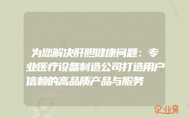 - 为您解决肝胆健康问题:专业医疗设备制造公司打造用户信赖的高品质产品与服务