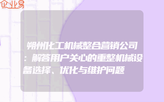 - 朔州化工机械整合营销公司:解答用户关心的重整机械设备选择、优化与维护问题