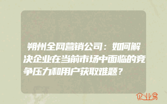 - 朔州全网营销公司:如何解决企业在当前市场中面临的竞争压力和用户获取难题?