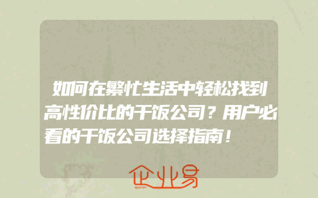 - 如何在繁忙生活中轻松找到高性价比的干饭公司?用户必看的干饭公司选择指南!
