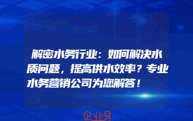 - 解密水务行业:如何解决水质问题,提高供水效率?专业水务营销公司为您解答!
