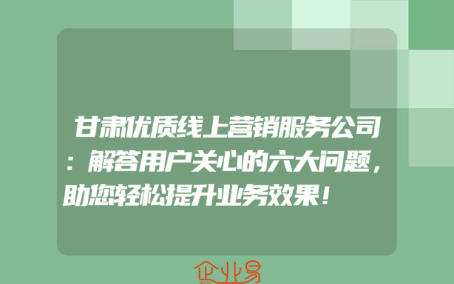 - 甘肃优质线上营销服务公司:解答用户关心的六大问题,助您轻松提升业务效果!