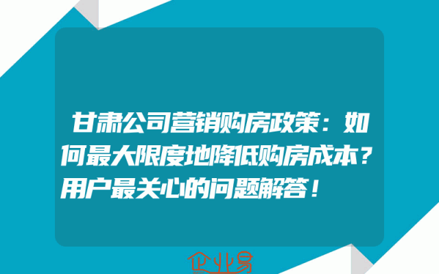 - 甘肃公司营销购房政策:如何最大限度地降低购房成本?用户最关心的问题解答!