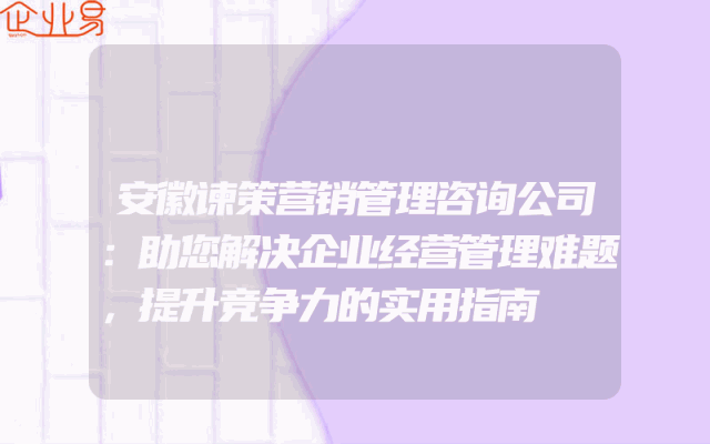 - 安徽谏策营销管理咨询公司:助您解决企业经营管理难题,提升竞争力的实用指南