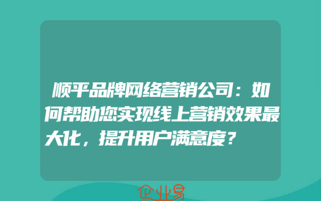 - 顺平品牌网络营销公司:如何帮助您实现线上营销效果最大化,提升用户满意度?