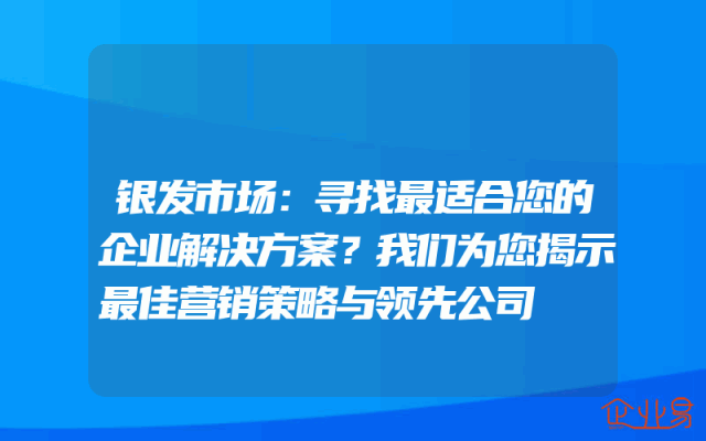 - 银发市场:寻找最适合您的企业解决方案?我们为您揭示最佳营销策略与领先公司