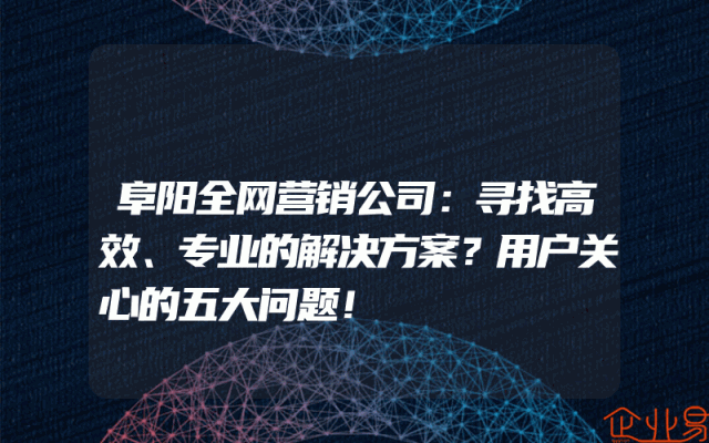 - 阜阳全网营销公司:寻找高效、专业的解决方案?用户关心的五大问题!