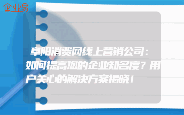 - 阜阳消费网线上营销公司:如何提高您的企业知名度?用户关心的解决方案揭晓!