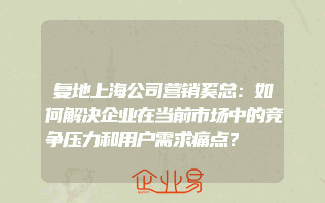 - 复地上海公司营销奚总:如何解决企业在当前市场中的竞争压力和用户需求痛点?