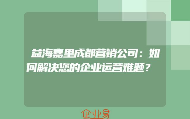 - 益海嘉里成都营销公司:如何解决您的企业运营难题?