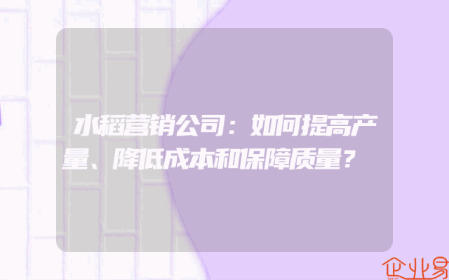- 水稻营销公司:如何提高产量、降低成本和保障质量?