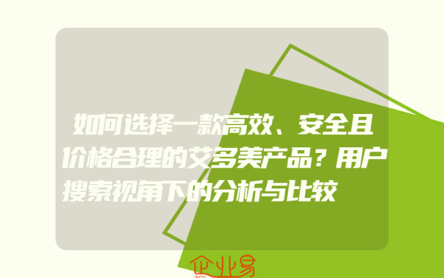 - 如何选择一款高效、安全且价格合理的艾多美产品?用户搜索视角下的分析与比较
