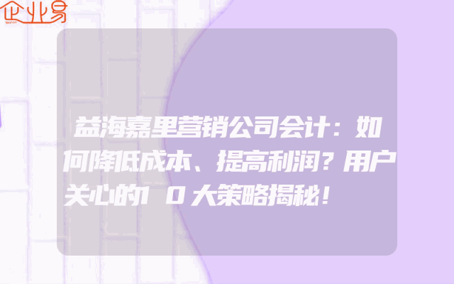 - 益海嘉里营销公司会计:如何降低成本、提高利润?用户关心的10大策略揭秘!在当今竞争激烈的市场环境中,企业要想在众多竞争对手中脱颖而出,降低成本、提高利润是非常关键的。作为一家专业的营销公司,益海嘉里的会计们深知这一点,他们总结出了一套行之有