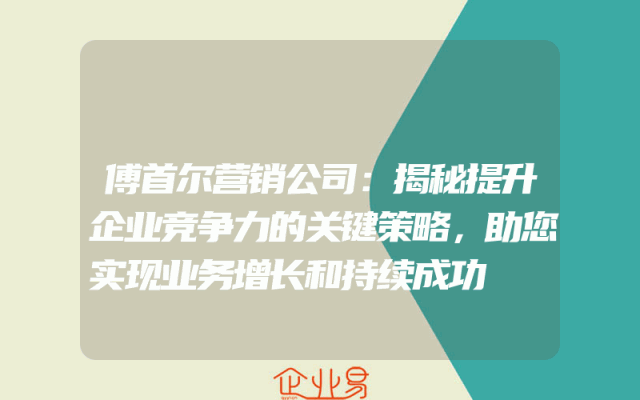- 傅首尔营销公司:揭秘提升企业竞争力的关键策略,助您实现业务增长和持续成功