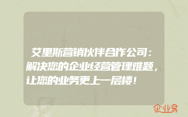 - 艾里斯营销伙伴合作公司:解决您的企业经营管理难题,让您的业务更上一层楼!