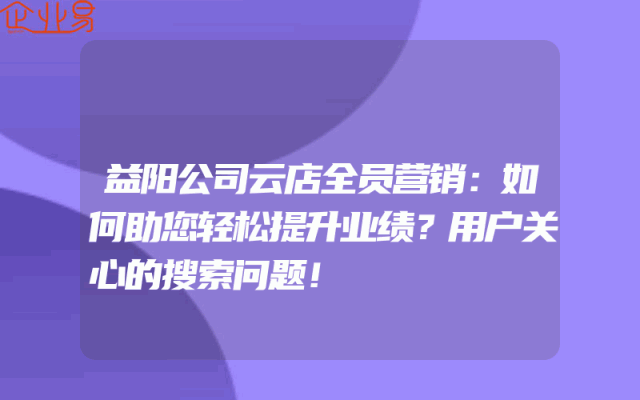 - 益阳公司云店全员营销:如何助您轻松提升业绩?用户关心的搜索问题!