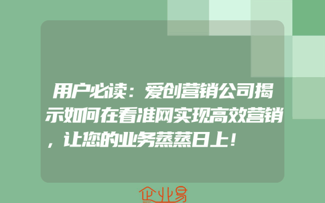 - 用户必读:爱创营销公司揭示如何在看准网实现高效营销,让您的业务蒸蒸日上!