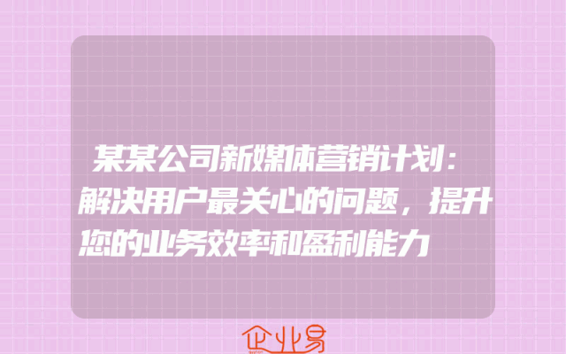 - 某某公司新媒体营销计划:解决用户最关心的问题,提升您的业务效率和盈利能力