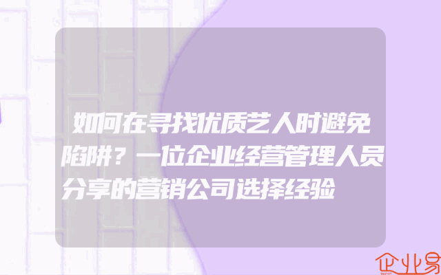 - 如何在寻找优质艺人时避免陷阱?一位企业经营管理人员分享的营销公司选择经验