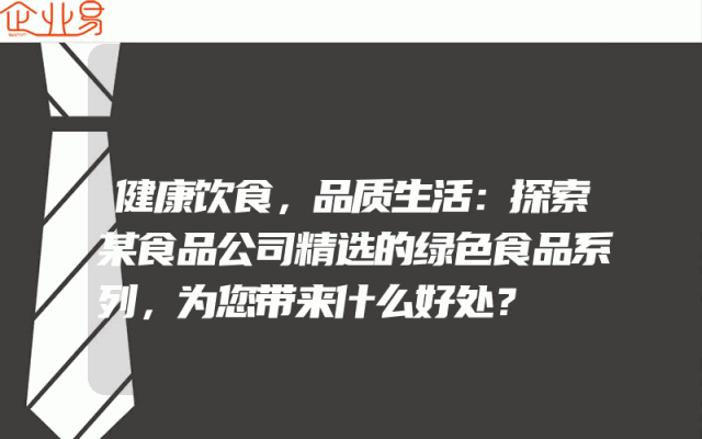 - 健康饮食,品质生活:探索某食品公司精选的绿色食品系列,为您带来什么好处?