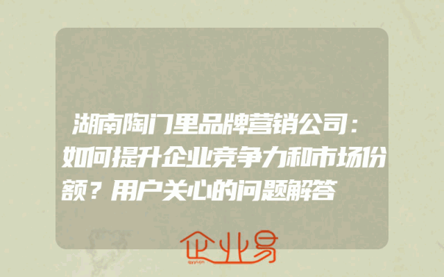 - 湖南陶门里品牌营销公司:如何提升企业竞争力和市场份额?用户关心的问题解答