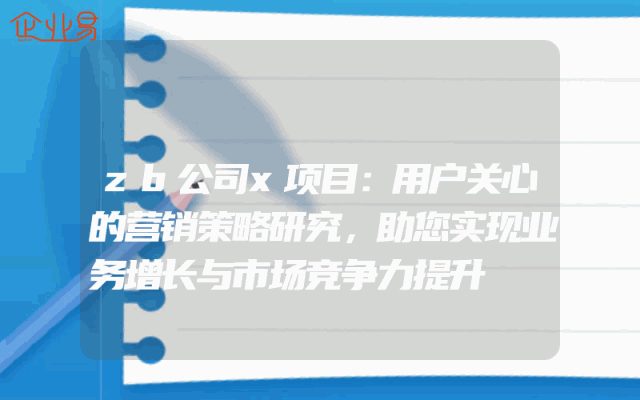 - zb公司x项目:用户关心的营销策略研究,助您实现业务增长与市场竞争力提升