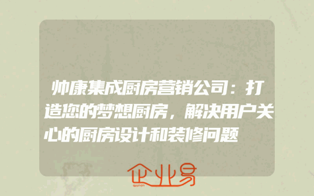 - 帅康集成厨房营销公司:打造您的梦想厨房,解决用户关心的厨房设计和装修问题