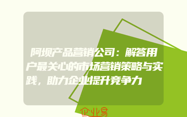 - 阿坝产品营销公司:解答用户最关心的市场营销策略与实践,助力企业提升竞争力