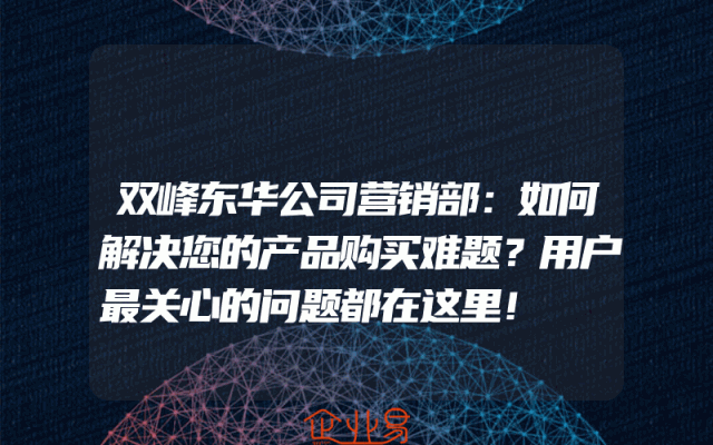 - 双峰东华公司营销部:如何解决您的产品购买难题?用户最关心的问题都在这里!