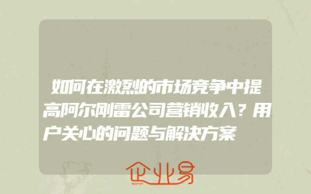 - 如何在激烈的市场竞争中提高阿尔刚雷公司营销收入?用户关心的问题与解决方案