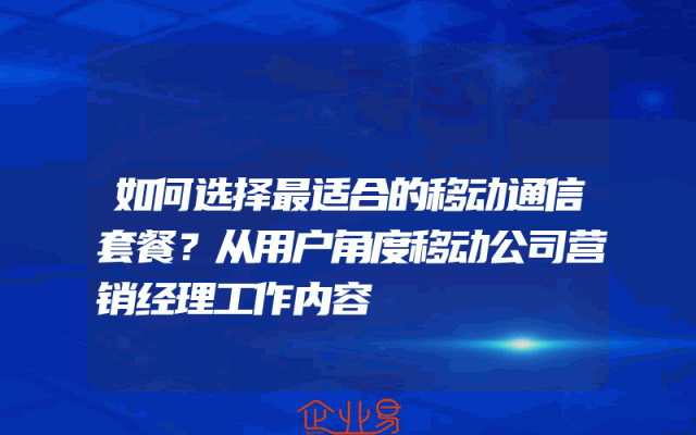 - 如何选择最适合的移动通信套餐?从用户角度移动公司营销经理工作内容