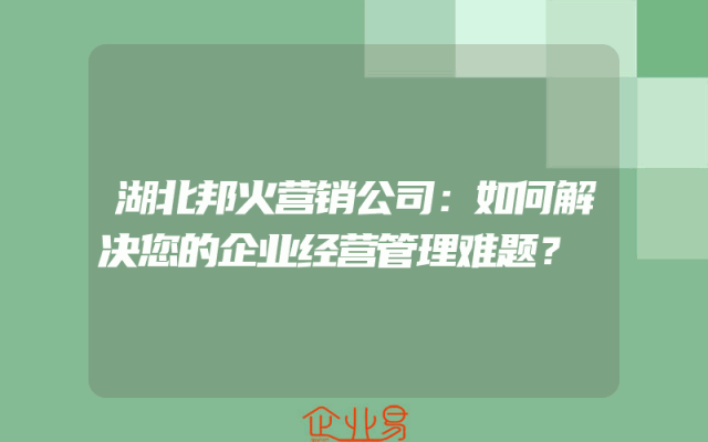 - 湖北邦火营销公司:如何解决您的企业经营管理难题?