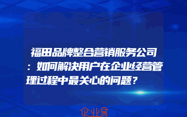 - 福田品牌整合营销服务公司:如何解决用户在企业经营管理过程中最关心的问题?