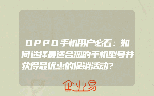 - OPPO手机用户必看:如何选择最适合您的手机型号并获得最优惠的促销活动?在当今的智能手机市场中,OPPO无疑是一个备受关注的品牌。它以其出色的性能、创新的设计和卓越的摄像头技术赢得了消费者的喜爱。然而,面对众多的OPPO手机型号和各种促销活