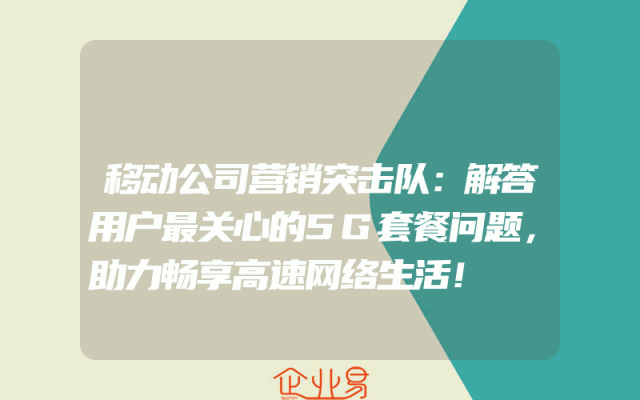 - 移动公司营销突击队:解答用户最关心的5G套餐问题,助力畅享高速网络生活!