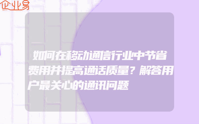 - 如何在移动通信行业中节省费用并提高通话质量?解答用户最关心的通讯问题