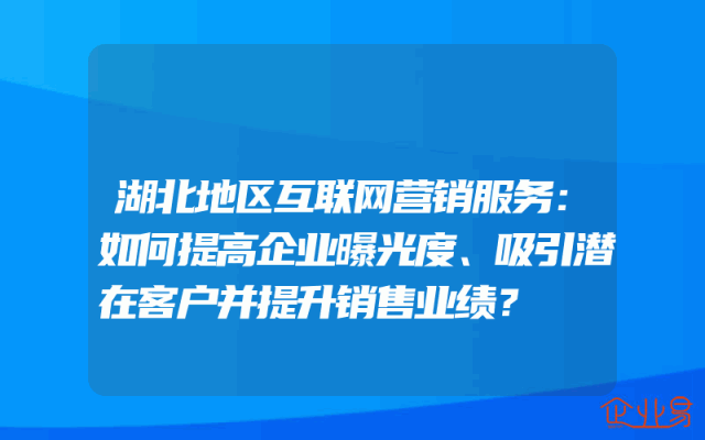 - 湖北地区互联网营销服务:如何提高企业曝光度、吸引潜在客户并提升销售业绩?