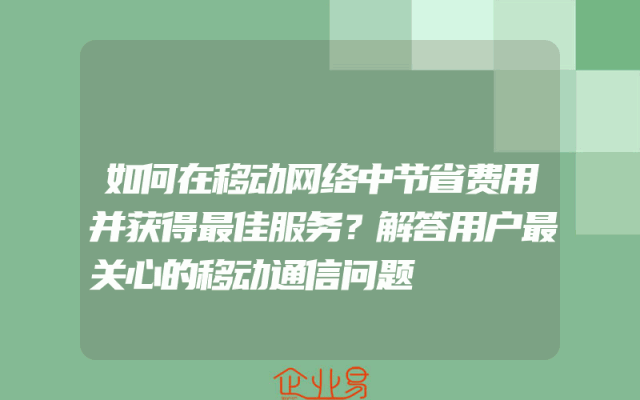 - 如何在移动网络中节省费用并获得最佳服务?解答用户最关心的移动通信问题